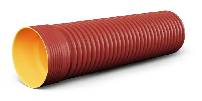 Полипропиленовые гофрированные трубы с двойной стенкой для наружных систем безнапорной канализации ГОСТ Р54475-2011. Канализационные трубы наружные имеют двухслойную структуру, большую кольцевую жесткость. Внешний слой – гофрированный, выполняет защитную функцию от воздействия окружающей среды. Внутренний слой имеет гладкую поверхность, которая обеспечивает максимальную пропускную способность. Трубы поставляются кратно отрезкам 6 метров и в комплекте с уплотнительным кольцом.  Диаметры от 110 до 1000 мм. Кольцевая жесткость данных трубы SN8, SN10, SN16, SN24.
